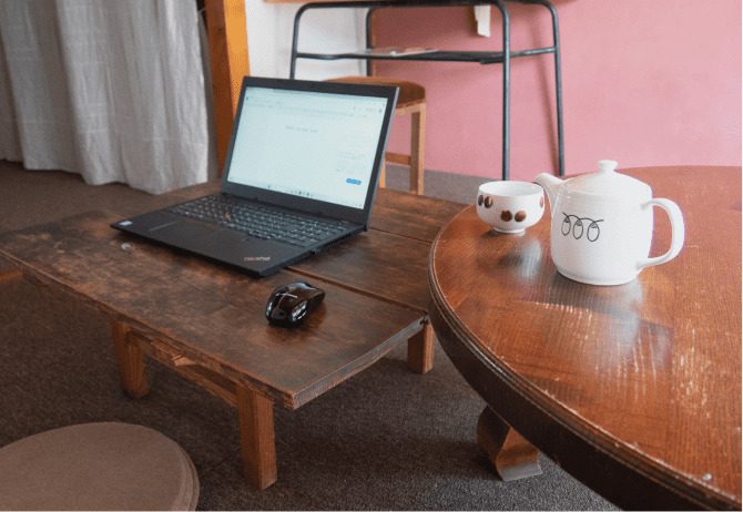大小ふたつのちゃぶ台があり、お食事や打ち合わせ、デスクワークなどにお使いいただけます。
