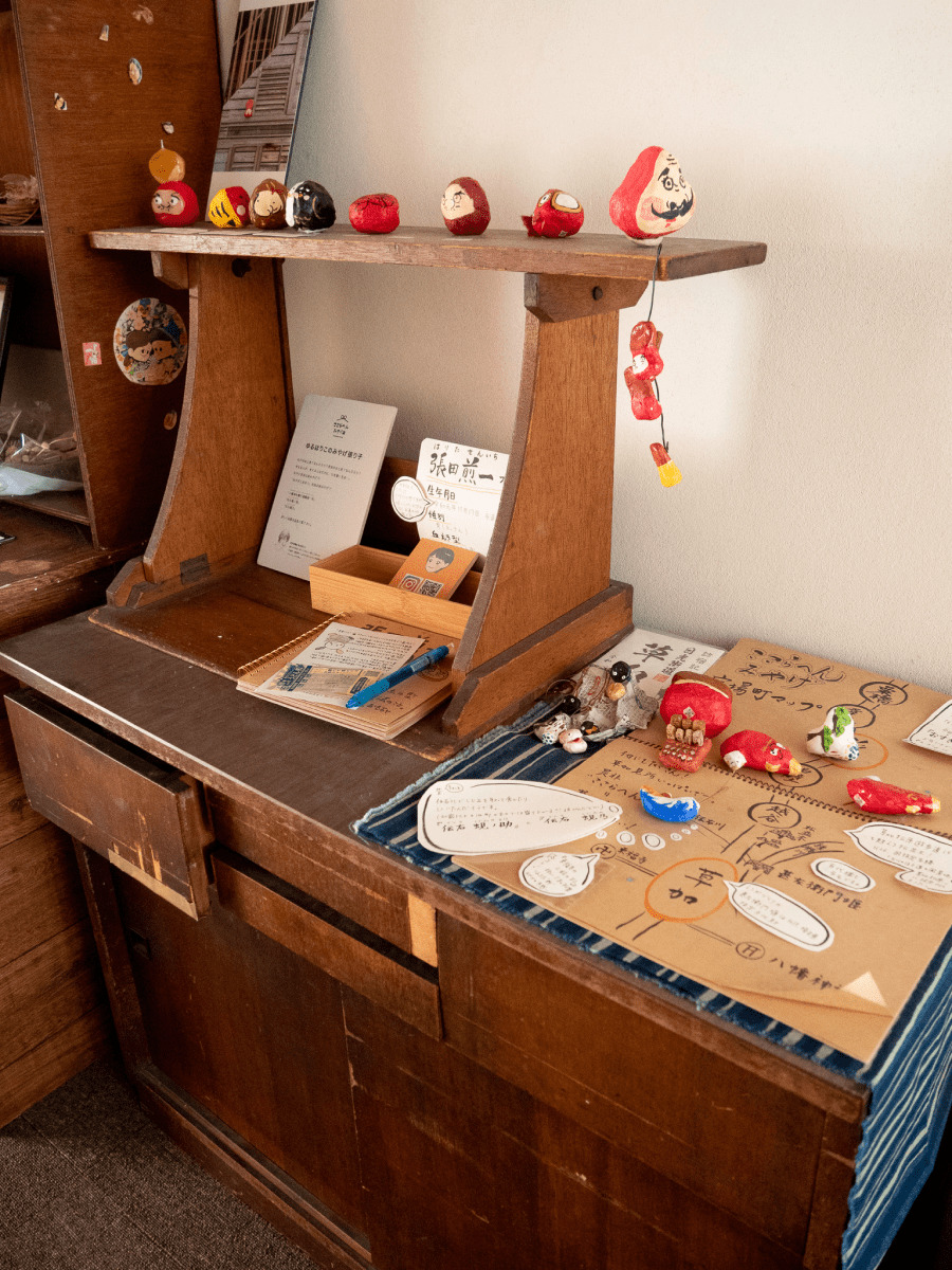 レスキューした戸棚を利用して、作家さんの作品を展示しています。