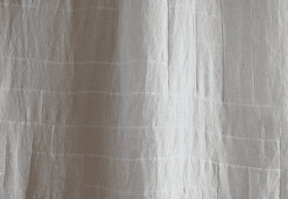 壁一面の大きな布は、手作りのポジャギカーテンです。ポジャギは韓国の伝統的なパッチワークで、大きさの違う端切れを縫い合わせます。