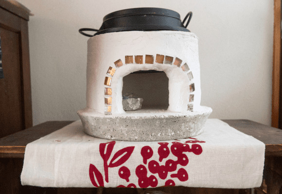 これは炊飯窯です。火をくべればご飯が炊けますが、みのりばではインテリアとしてご鑑賞ください。